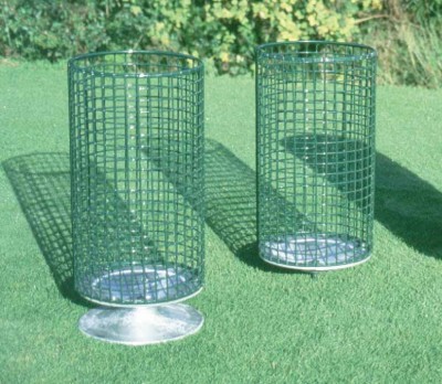 Round plastic coated basket, 21” high x 11” dia on a solid aluminium base with 9” spike standard colour dark green, other colours available on request.