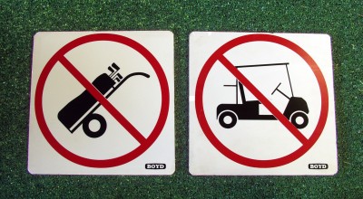 BUGGY/CADDY SIGNS 12" x 12" Red and White Prohibited Plastic Sign. ( note Spike / Post not included.) Prod No: 0759
