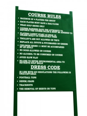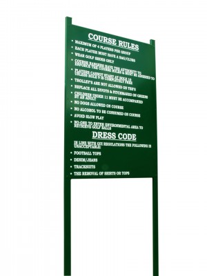Wall Mounting or Freestanding outside or inside use. Keep your members and visitors well informed on Course Rules and Codes can be made to clubs specification, made of Aluminium Powder Coated. Timber or Steel Frame options, from below, POA, telephone for a quote